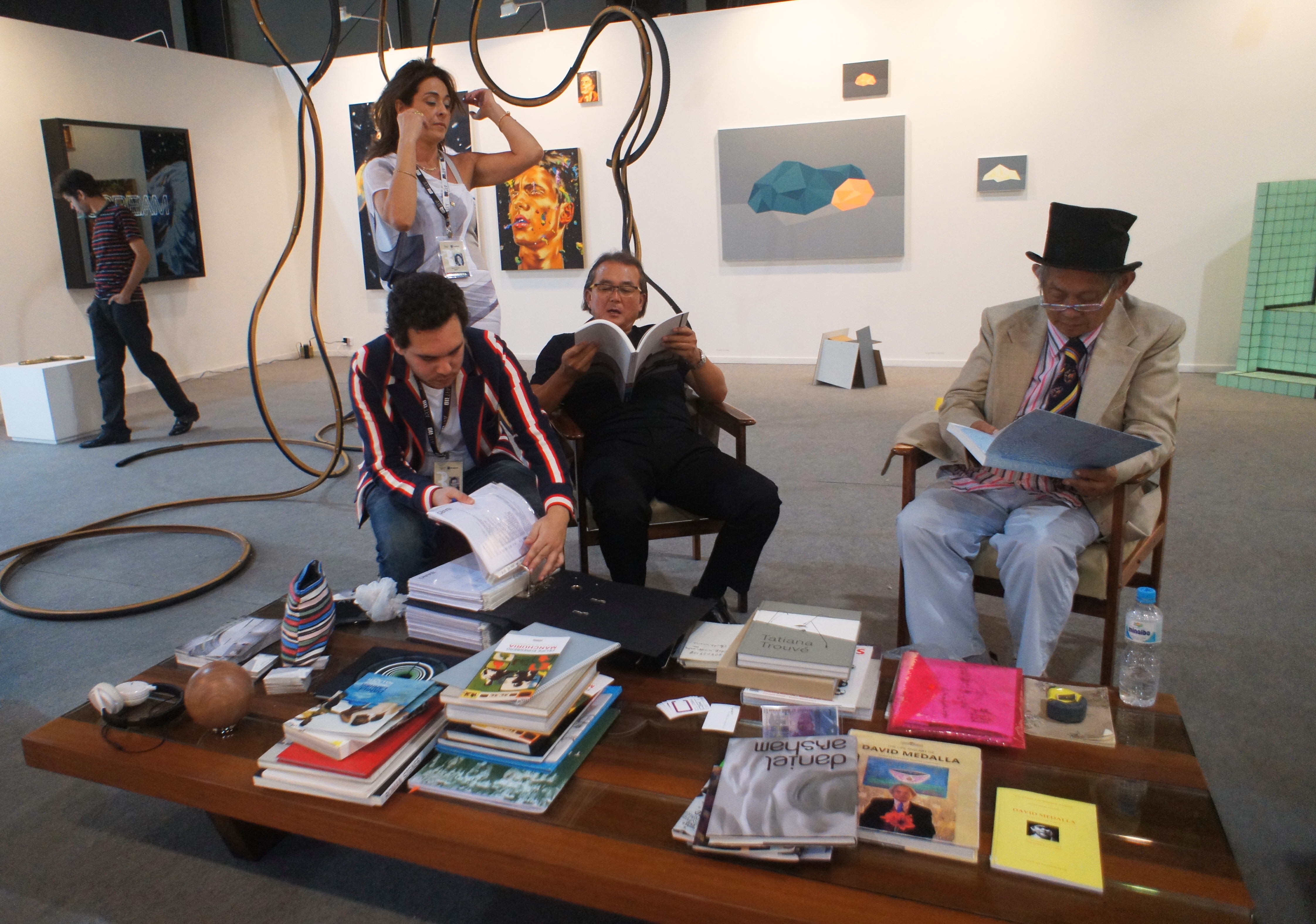 Há tantas coisas acontecendo na feira e ao redor dela, e tudo tão bem organizado– stands de comida, visitas a galerias cariocas espalhadas pela cidade, um bar e festa da boate 00, atividades para crianças, um stand da Casa do Saber, bate-papos com e sobre artistas, pessoas vestidas como homens e mulheres das cavernas e empunhando bastões, doces bizarros, lançamentos de livros — que aquele bordão“imagine na Copa” nem passa pela cabeça.